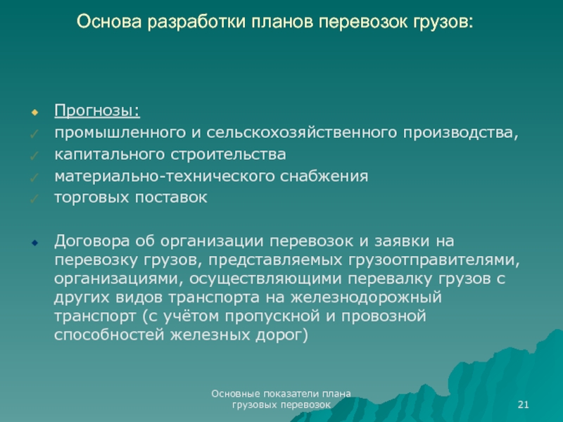 План работы подвижного состава в грузовом движении разрабатывается на основе прогноза спроса на перевозки и размеров грузовых потоков по участкам и направлениям в изложенном ниже порядке.