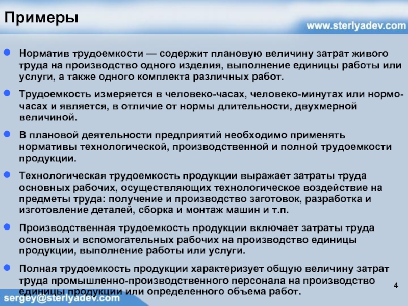 Норматив трудоемкости — содержит плановую величину затрат живого труда на производство