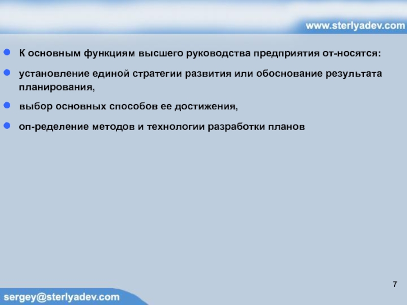 К основным функциям высшего руководства предприятия относятся: