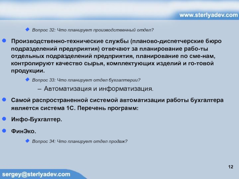 Вопрос 32: Что планирует производственный отдел?