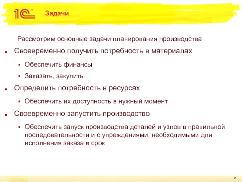 Обеспечить запуск производства деталей и узлов в правильной последовательности и с упреждениями, необходимыми для исполнения заказа в срок