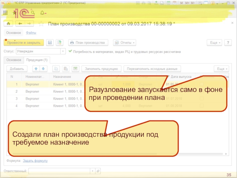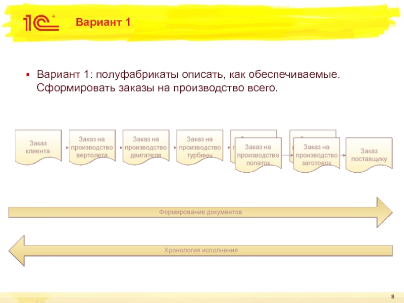 Вариант 1: полуфабрикаты описать, как обеспечиваемые. Сформировать заказы на производство