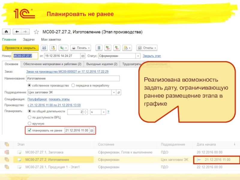 Реализована возможность задать дату, ограничивающую раннее размещение этапа в