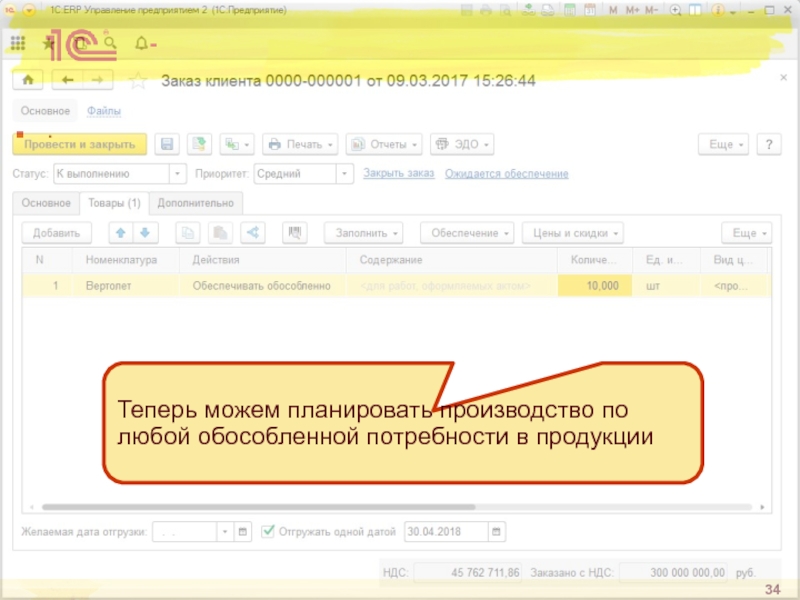 Продукция заказов имеет необходимое назначение. Таким образом, полученные детали будут выпущены обособленно для нашего клиентского заказа, а не в свободный остаток
