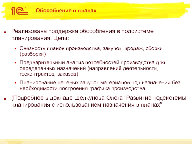 себе такие инструменты, как Планы (продаж, производства, закупок, сборки), предназначенные для укрупненного, предварительного планирования. В значительной мере позиционировалась ранее для прогнозного планирования
