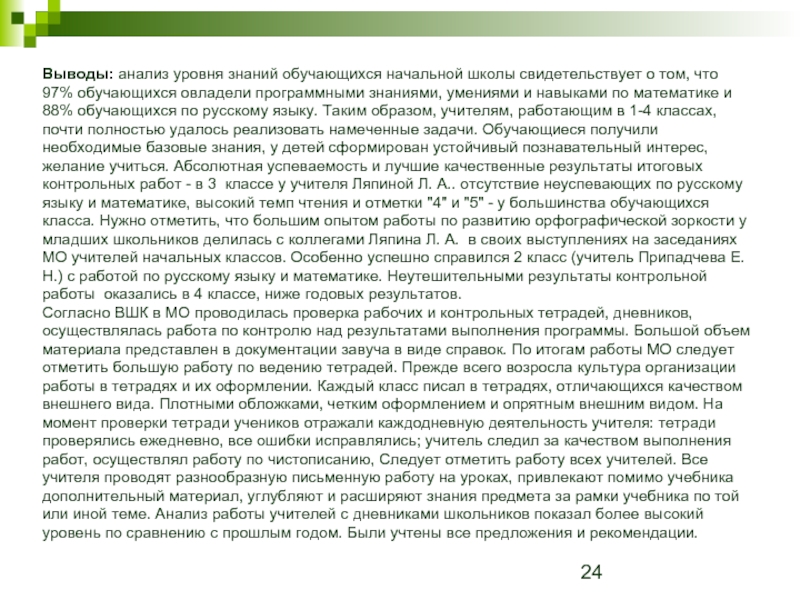 Слайд 24Выводы: анализ уровня знаний обучающихся начальной школы свидетельствует о том, что