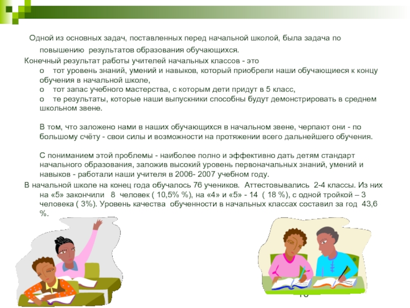 Слайд 10 Одной из основных задач, поставленных перед начальной школой, была задача