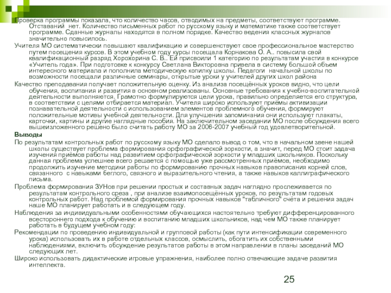 Слайд 25Проверка программы показала, что количество часов, отводимых на предметы, соответствуют программе.