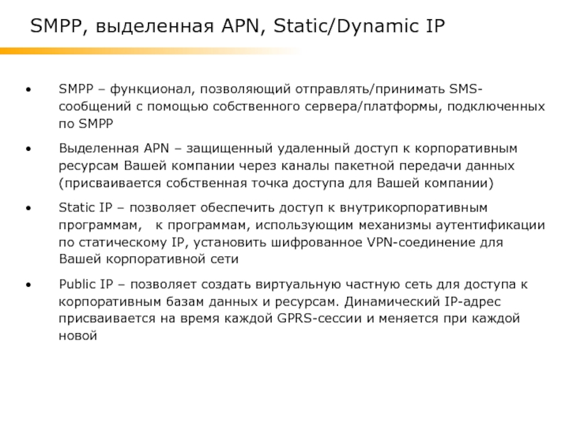 SMPP, выделенная APN, Static/Dynamic IP