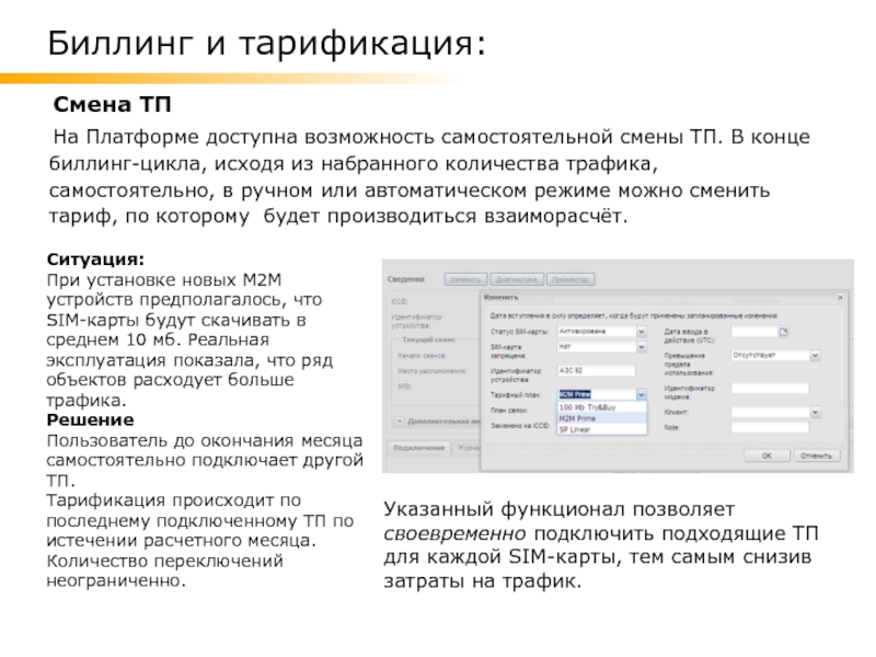 Указанный функционал позволяет своевременно подключить подходящие ТП для каждой SIM-карты, тем самым снизив затраты на трафик.