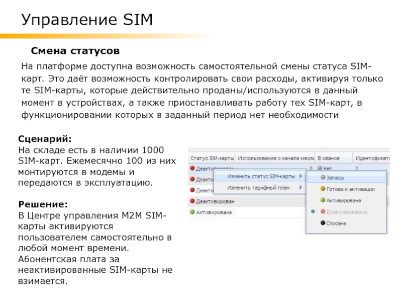 В Центре управления М2М SIM-карты активируются пользователем самостоятельно в любой момент времени.