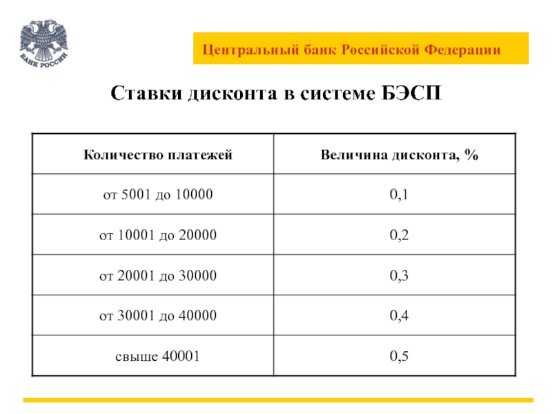 - дисконтная политика (система снижения тарифов, в зависимости от количества направленных в систему БЭСП электронных платежных сообщений)