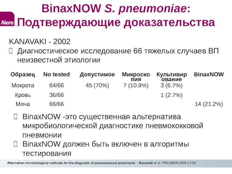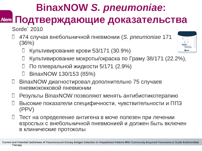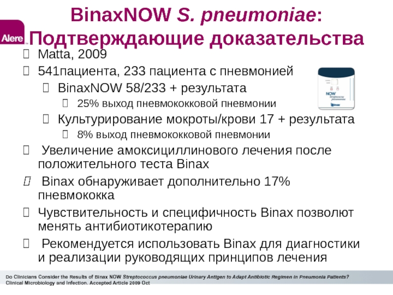BinaxNOW -это существенная альтернатива микробиологической диагностике пневмококковой пневмонии