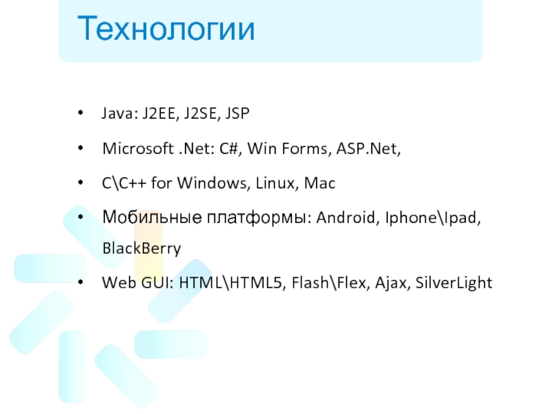 Мобильные платформы: Android, Iphone\Ipad, BlackBerry