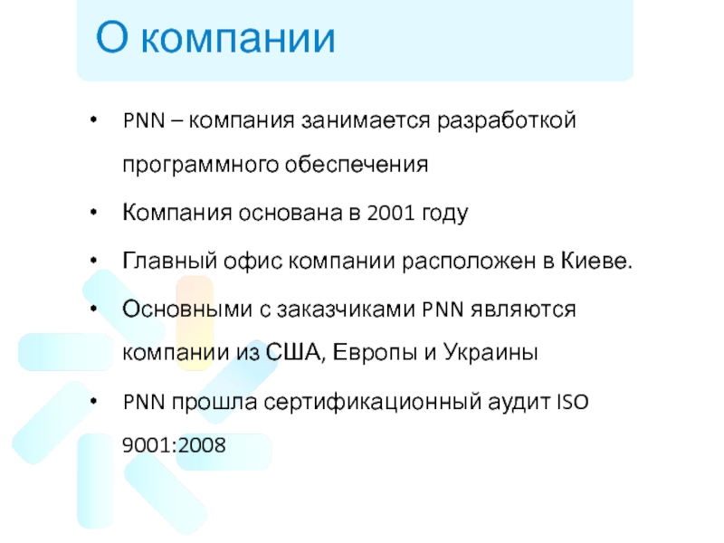 Основными с заказчиками PNN являются компании из США, Европы и Украины