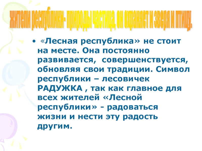 жители республики- природы частица, он охраняет и зверя и птицу.