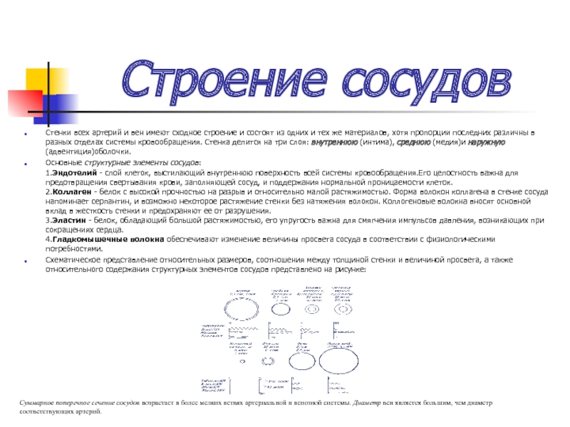 Суммарное поперечное сечение сосудов возрастает в более мелких ветвях артериальной и венозной системы. Диаметр вен является большим, чем диаметр соответствующих артерий.