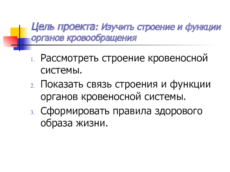Слайд 2Цель проекта: Изучить строение и функции органов кровообращения