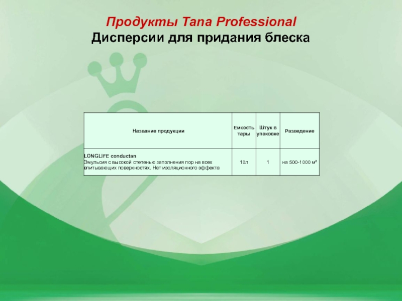Слайд 3Продукты Tana Professional Дисперсии для придания блеска