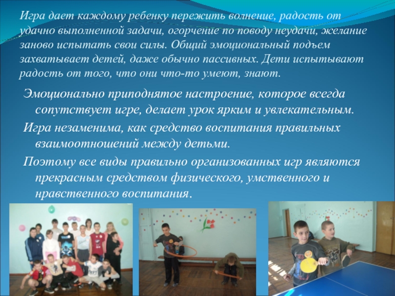 Поэтому все виды правильно организованных игр являются прекрасным средством физического, умственного и нравственного воспитания.