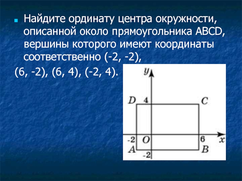 Найдите ординату центра окружности, описанной около прямоугольника ABCD, вершины которого имеют
