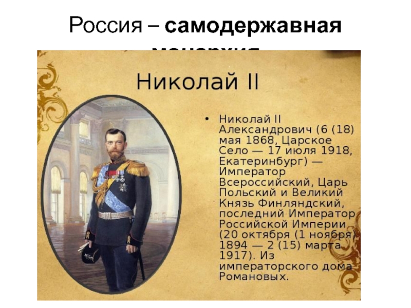 Слайд 2Россия – самодержавная монархия