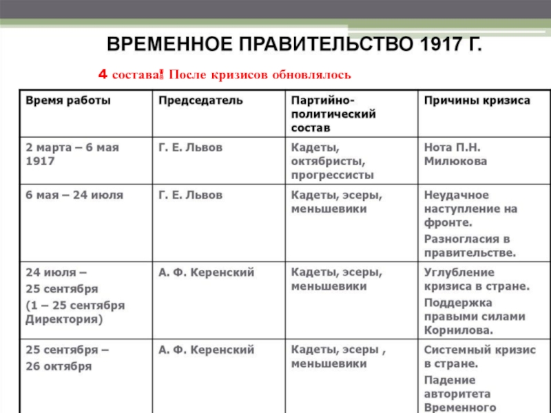Слайд 604 состава! После кризисов обновлялось