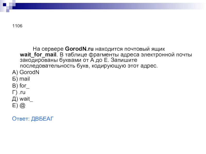 электронной почты закодированы буквами от А до Е. Запишите последовательность букв, кодирующую этот адрес.