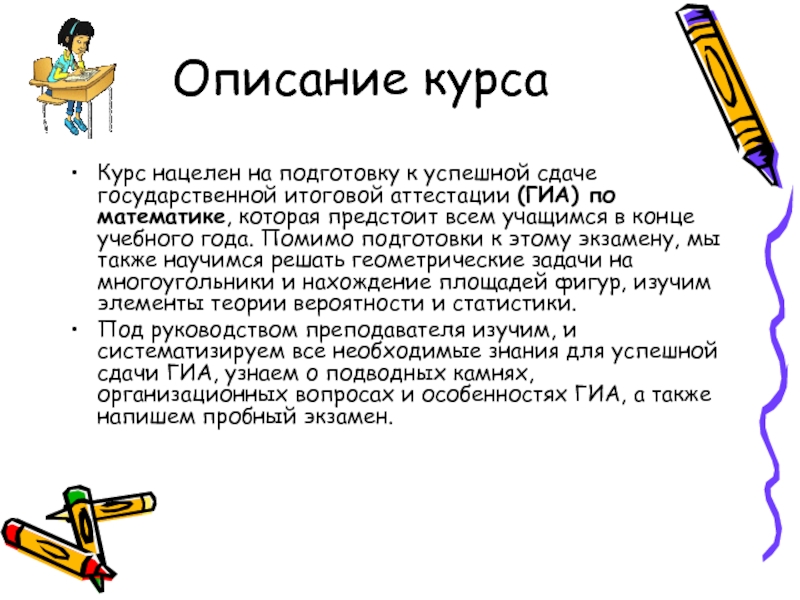 Курс нацелен на подготовку к успешной сдаче государственной итоговой аттестации