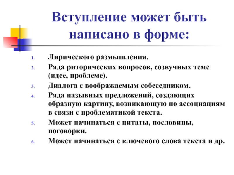 Может представлять собой развернутую или логически завершенную мысль, высказанную во вступлении.