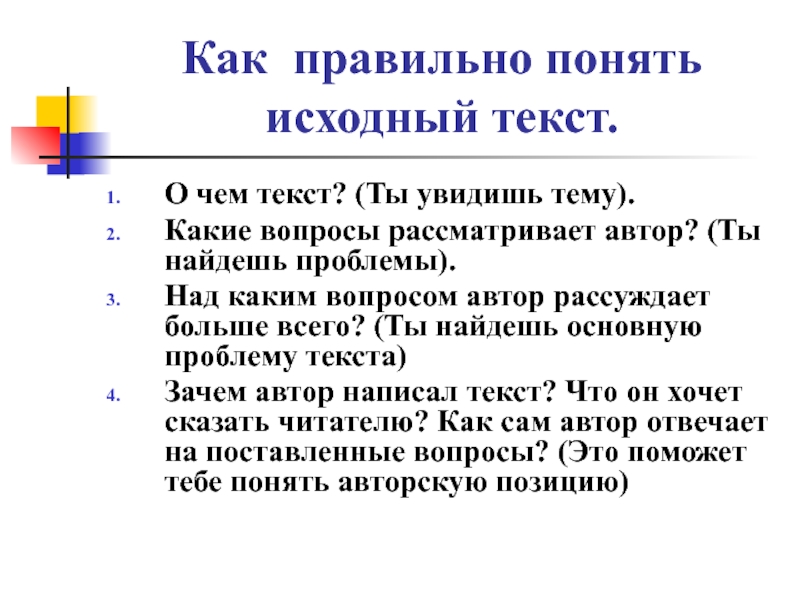 Зачем автор написал текст? Что он хочет сказать читателю? Как сам автор отвечает на поставленные вопросы? (Это поможет тебе понять авторскую позицию)