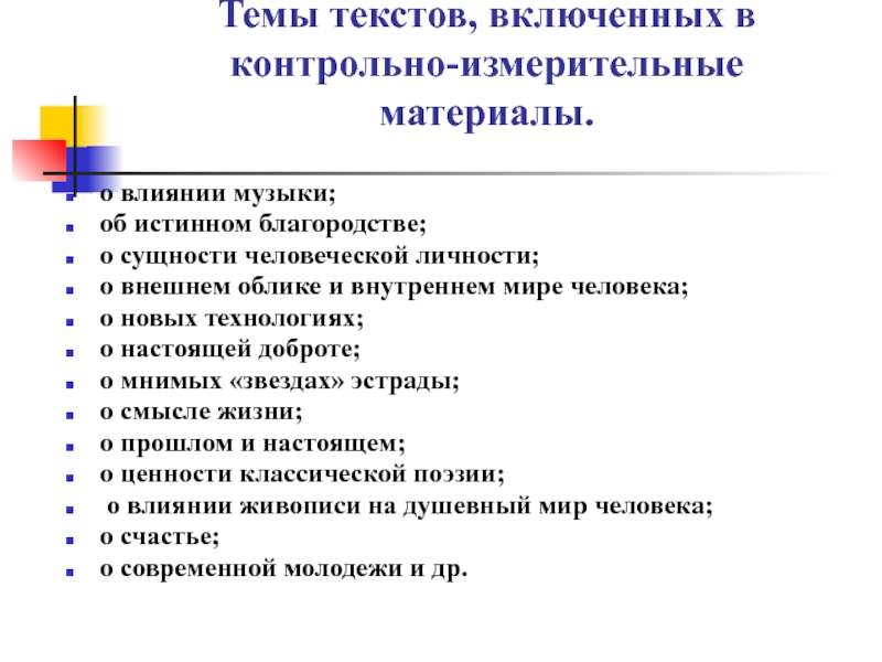 Слайд 3Темы текстов, включенных в контрольно-измерительные материалы.