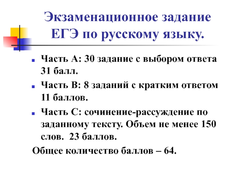 Слайд 2Экзаменационное задание ЕГЭ по русскому языку.