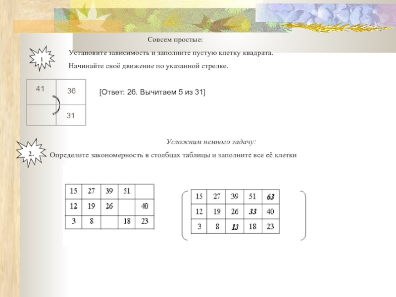 Определите закономерность в столбцах таблицы и заполните все её клетки
