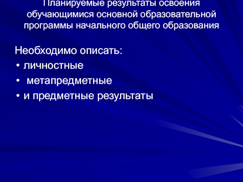 Слайд 12Планируемые результаты освоения обучающимися основной образовательной программы начального общего образования