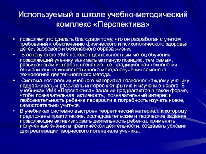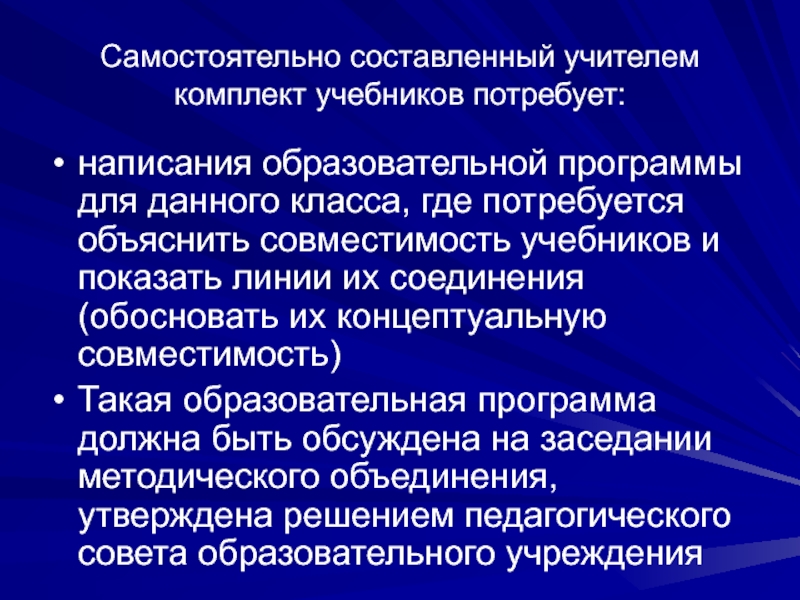 Необходимо описать концепцию систем(ы) учебников и обосновать выбор данных учебников