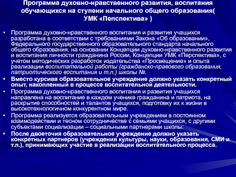 программу духовно-нравственного развития, воспитания обучающихся на ступени начального общего образования