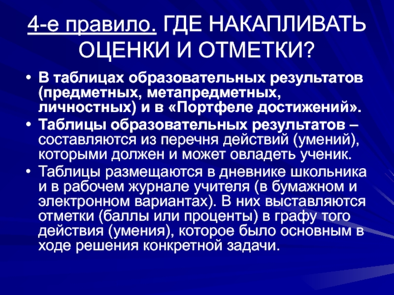 Слайд 1224-е правило. ГДЕ НАКАПЛИВАТЬ ОЦЕНКИ И ОТМЕТКИ?