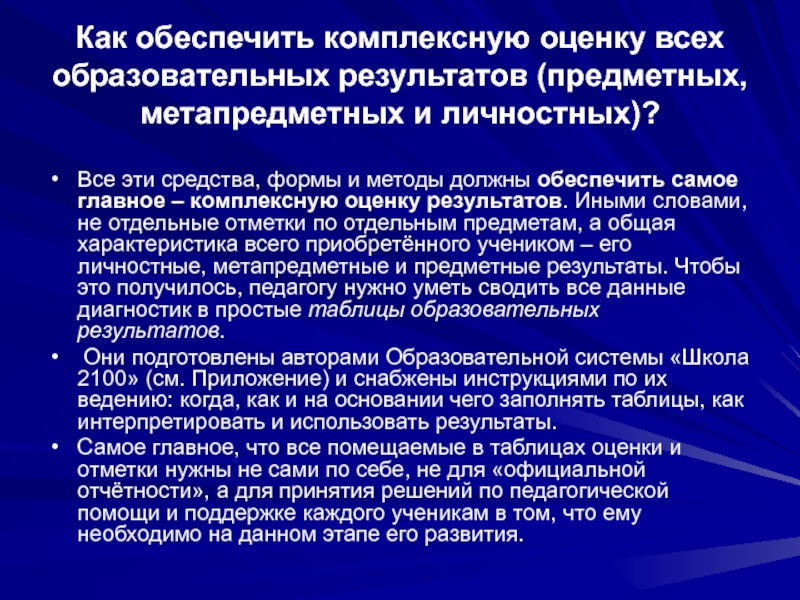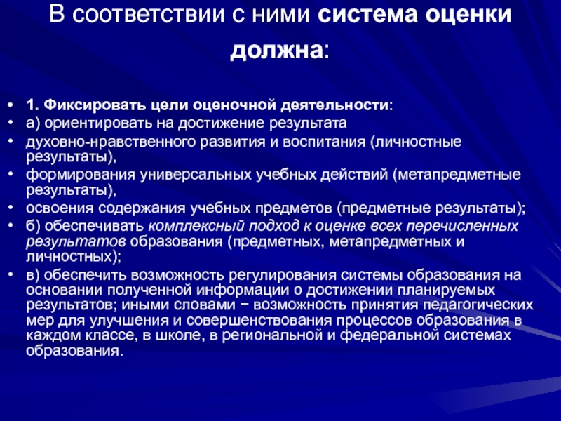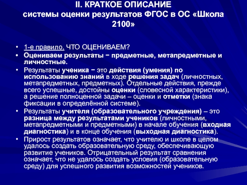 системы оценки образовательных результатов, требуемых ФГОС,