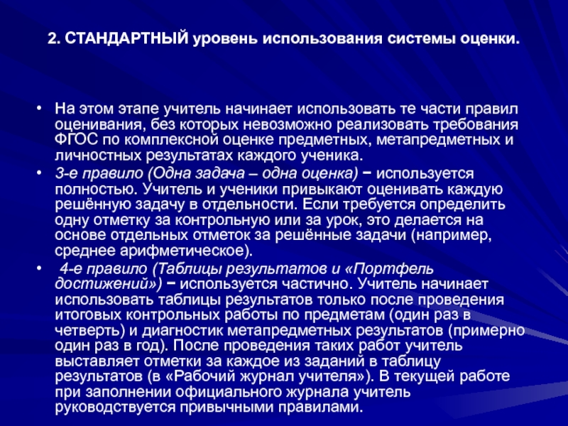 Слайд 1362. СТАНДАРТНЫЙ уровень использования системы оценки.