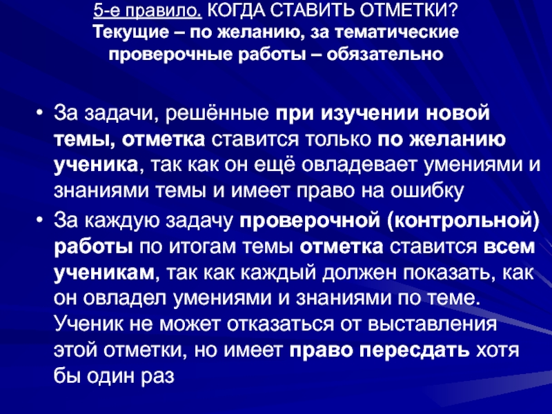 Слайд 1275-е правило. КОГДА СТАВИТЬ ОТМЕТКИ?