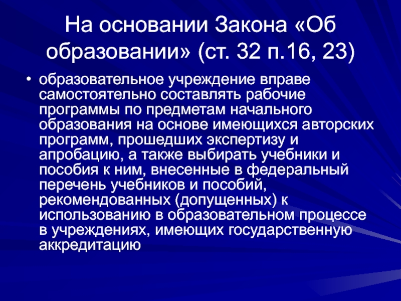 В соответствии с ФГОС все образовательные учреждения, имеющие государственную аккредитацию, обязаны разработать основную образовательную программу начального общего образования