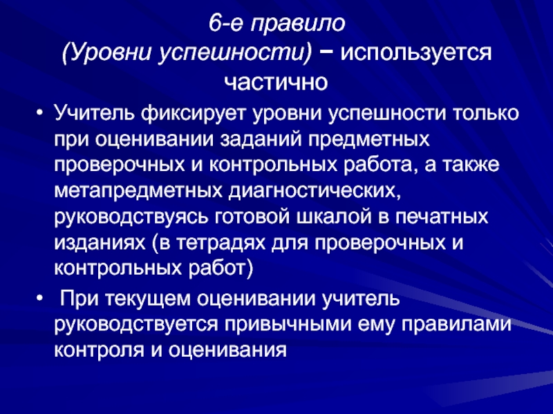 При текущем оценивании учитель руководствуется привычными ему правилами контроля и оценивания