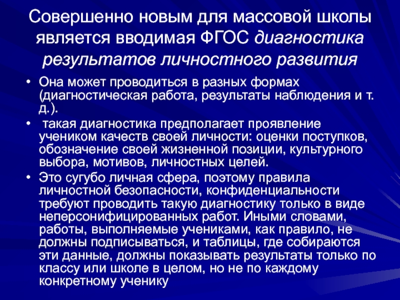 прогресс и достижения ученика в разных областях (учёба, творчество, общение, здоровье, полезный людям труд и т.д.), а также самоанализ учеником своих текущих достижений и недостатков, позволяющих самому определять цели своего дальнейшего развития.