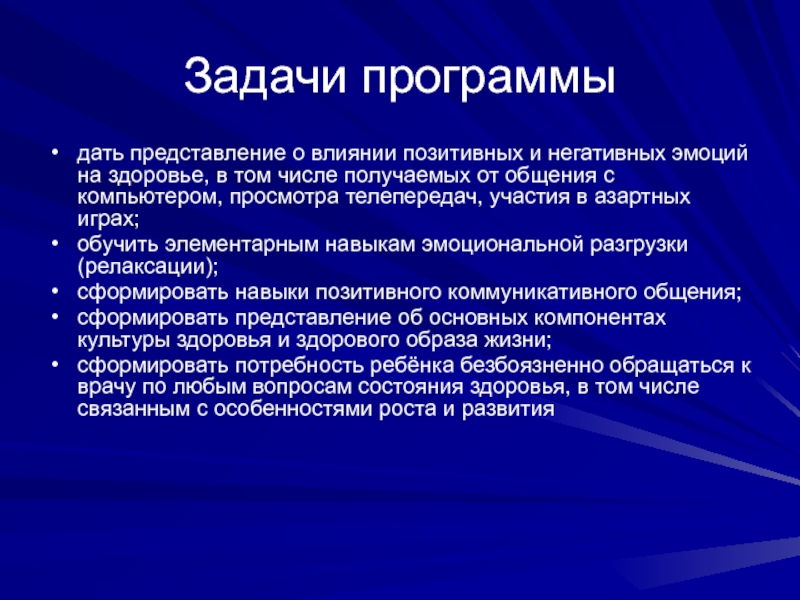 Цели и задачи, реализуемые в образовательной программе образовательного учреждения