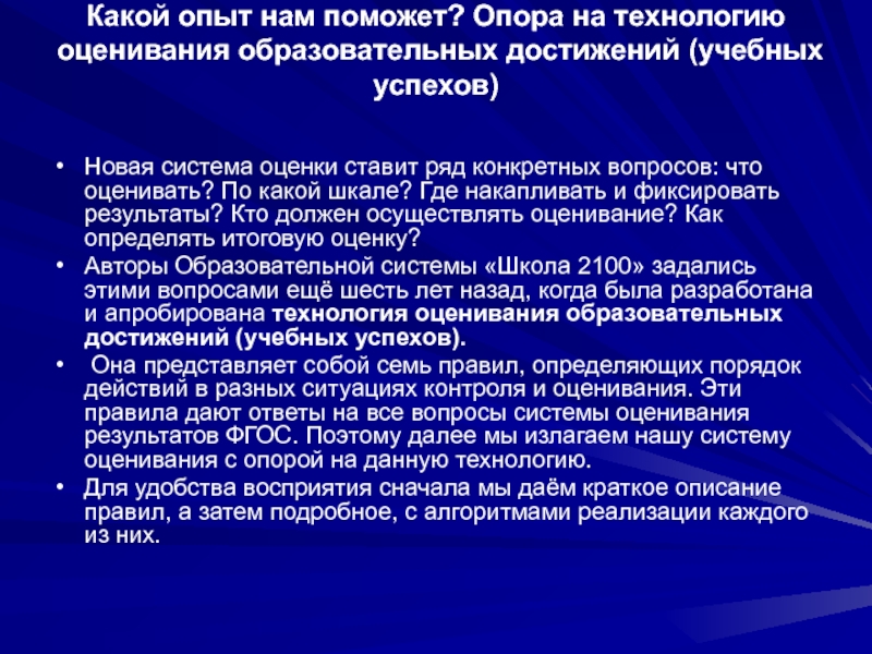 (частей правил) оценивания, то он может остановиться на достигнутом. Таким образом, ведение новой системы оценивания не потребует от учителя БОЛЬШИХ дополнительных временных затрат