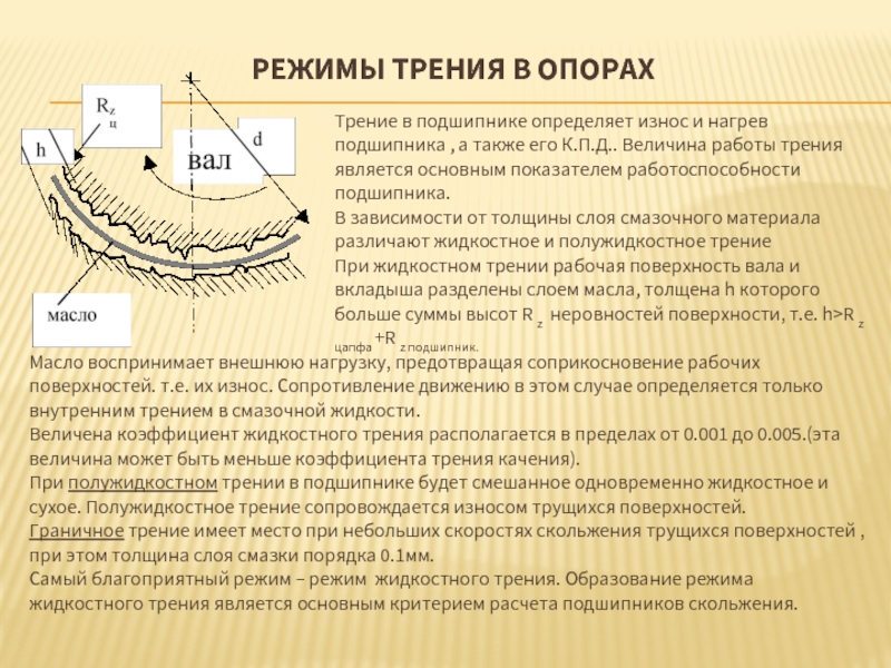 Слайд 7РЕЖИМЫ ТРЕНИЯ В ОПОРАХ
