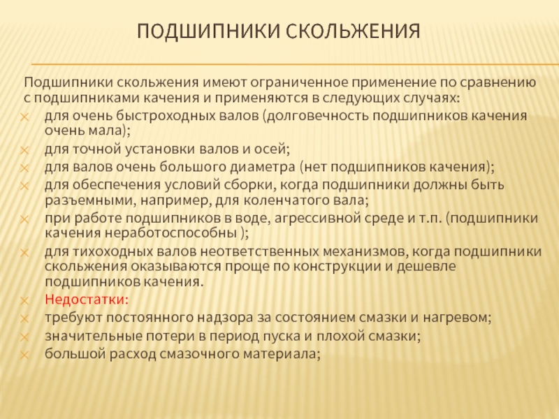 для тихоходных валов неответственных механизмов, когда подшипники скольжения оказываются проще по конструкции и дешевле подшипников качения.