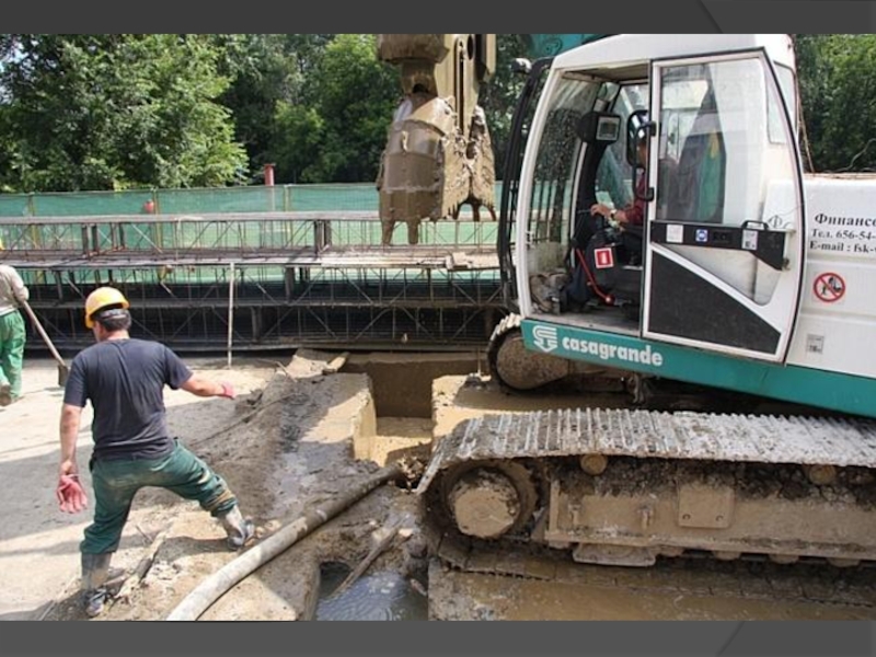 «Стена в грунте» служит не только ограждением глубоких котлованов, но также может быть одновременно капитальным фундаментом и стеной возводимого сооружения. Работы выполняются в условиях круглогодичного строительства.