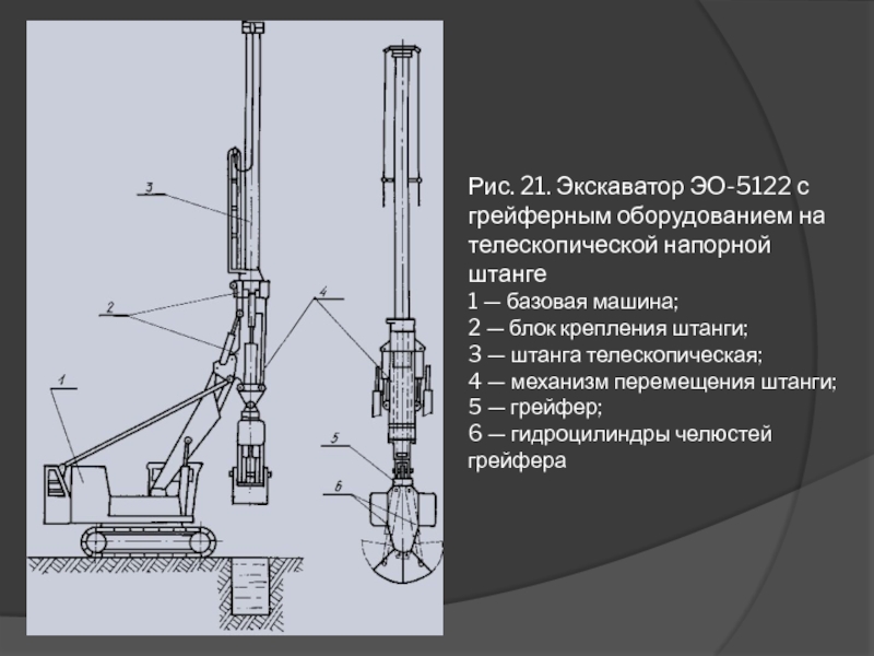 Слайд 29Рис. 21. Экскаватор ЭО-5122 с грейферным оборудованием на телескопической напорной штанге